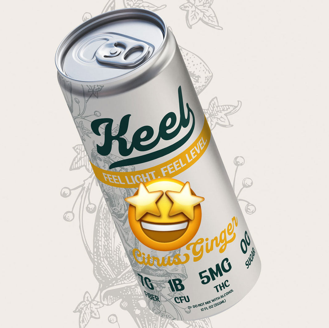 Keel is the first probiotic NA drink with dietary fibers that support gut health: 7 g soluble fiber, 1B CFU prebiotic and probiotic microorganisms, and a precise microdose of hemp Δ9 THC for a light and level feel.